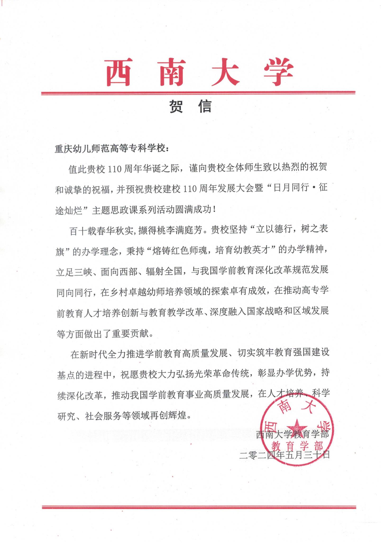 贺信|西南大学教育学部